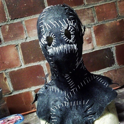 Blank Stare is a full head burlap and latex mask. He laces up the back with large eyelets and nylon cord. Fully customizable, email us for details or with any questions!