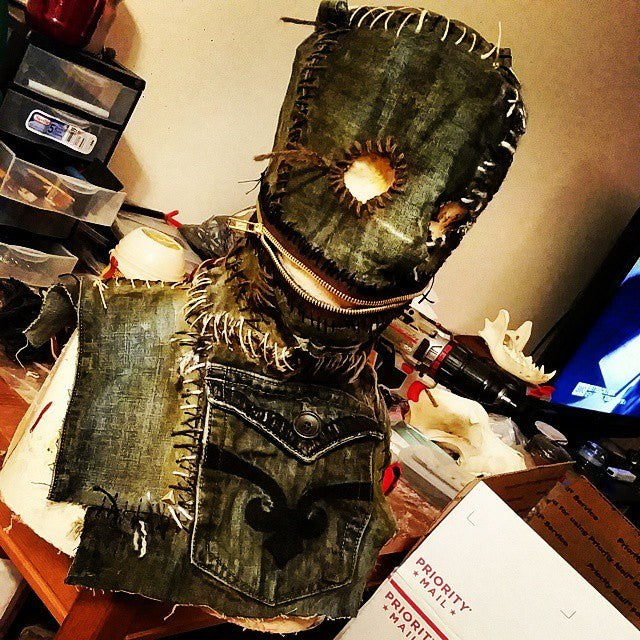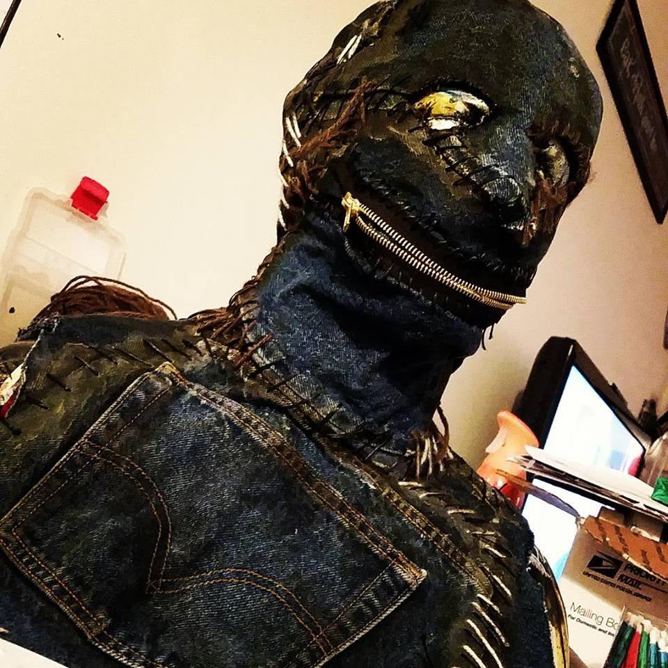 Gene is a full head denim and latex mask. He has a Zipper mouth. He laces up the back with large eyelets and nylon cord. Fully customizable, email us for details or with any questions!
