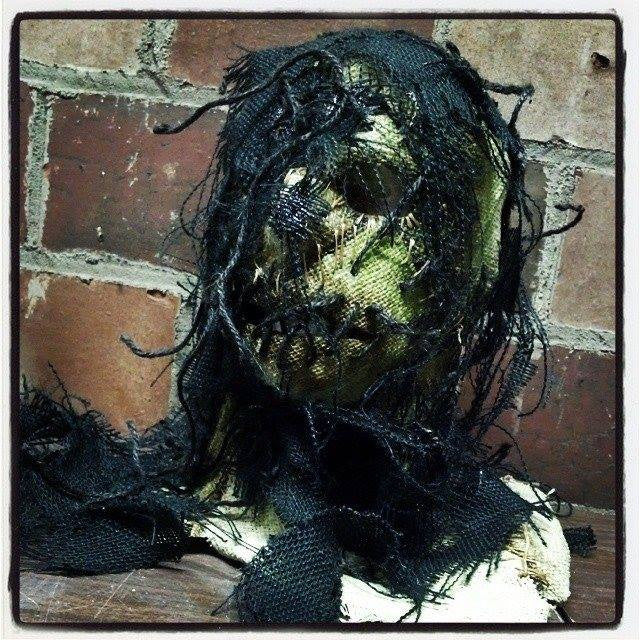 Mayhem is a full head burlap and latex mask. He has a tattered burlap hood. He laces up the back with large eyelets and nylon cord. Fully customizable, email us for details or with any questions!