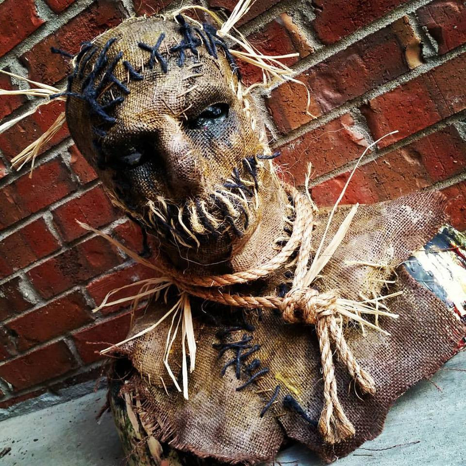 Scrow is a full head burlap and latex mask. He has lots of stitching and raffia. He laces up the back with large eyelets and nylon cord. Fully customizable, email us for details or with any questions!