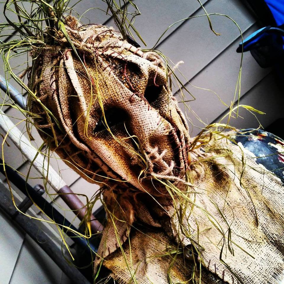 Stalk is a full head burlap and latex mask. He has Raffia and lots of jute stitching. He laces up the back with large eyelets and nylon cord. Fully customizable, email us for details or with any questions!